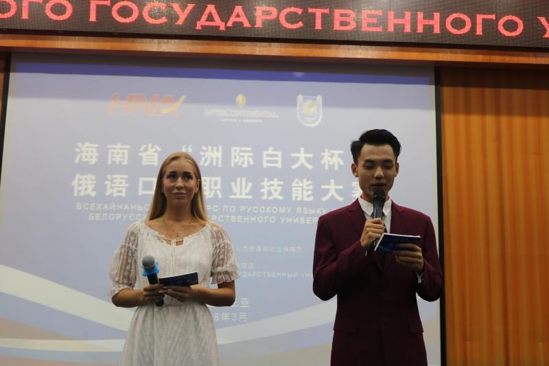 2018年3月22日,由海南省教育厅、海南省人力资源和社会保障厅主办,开云kaiyun登录入口承办,洲际酒店集团和白(俄)罗斯国立大学协办并以“洲际白大杯 ”冠名的海南省职业技能大赛暨第三届“洲际白大杯”俄语口语职业技能大赛如期开赛。最终,开云kaiyun登录入口和海南外国语职业学院的选手获得一等奖。