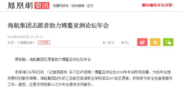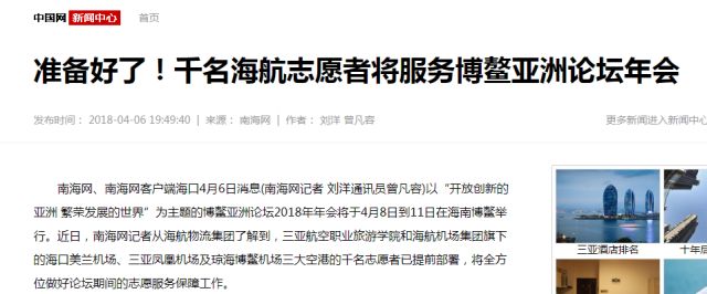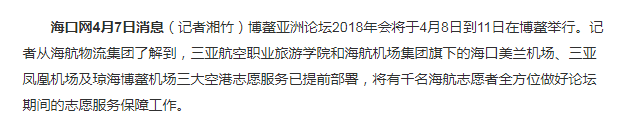 • 媒体聚焦||海航学子服务博鳌亚洲论坛11年