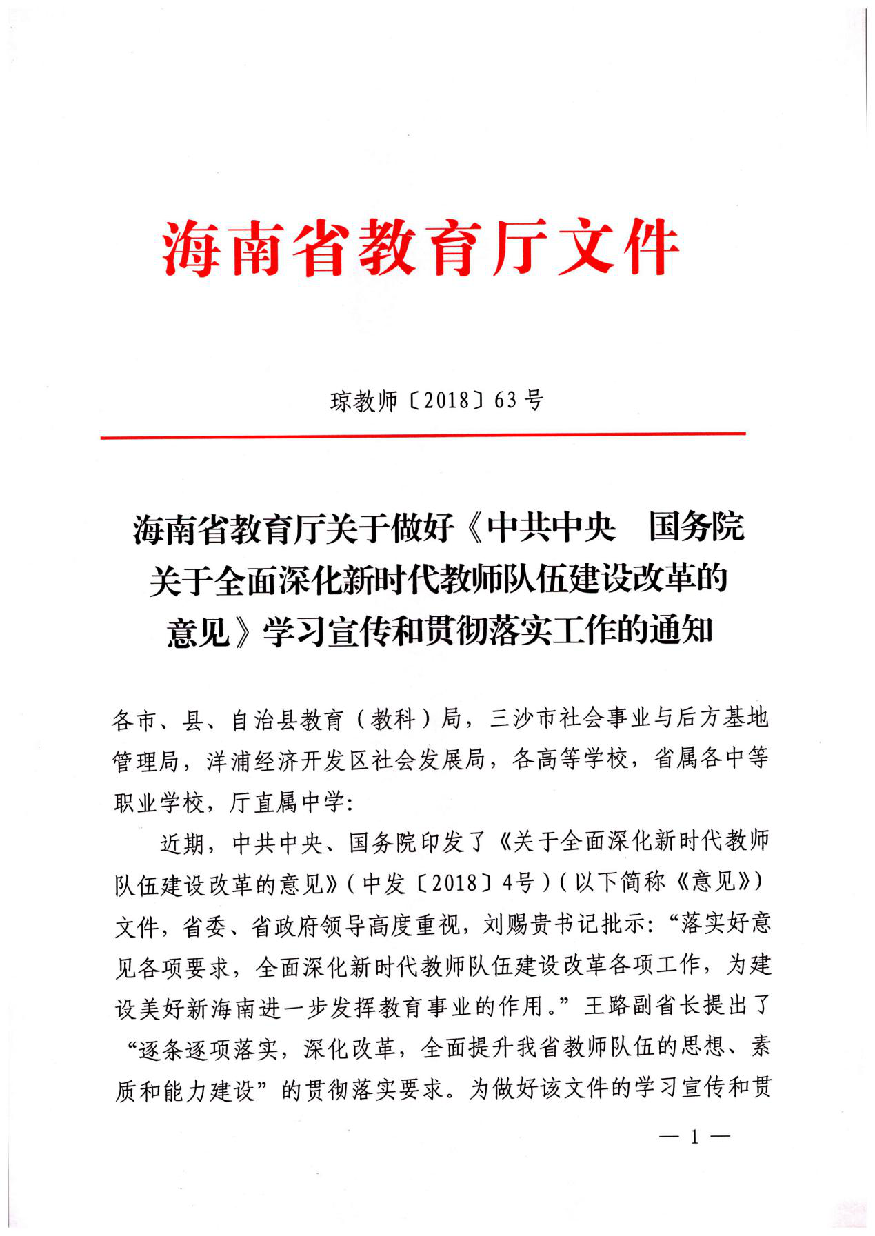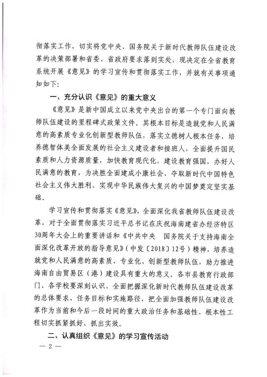 海南省教育厅关于做好《中共中央 国务院关于全面深化新时代教师队伍建设改革的意见》学习宣传和贯彻落实工作的通知