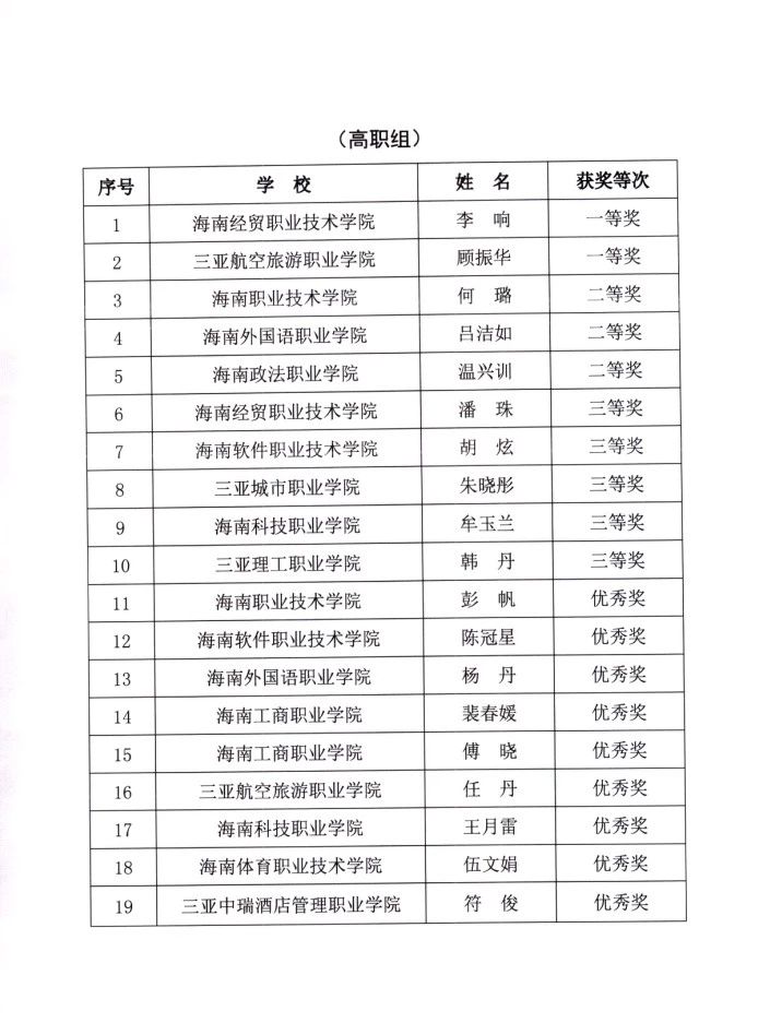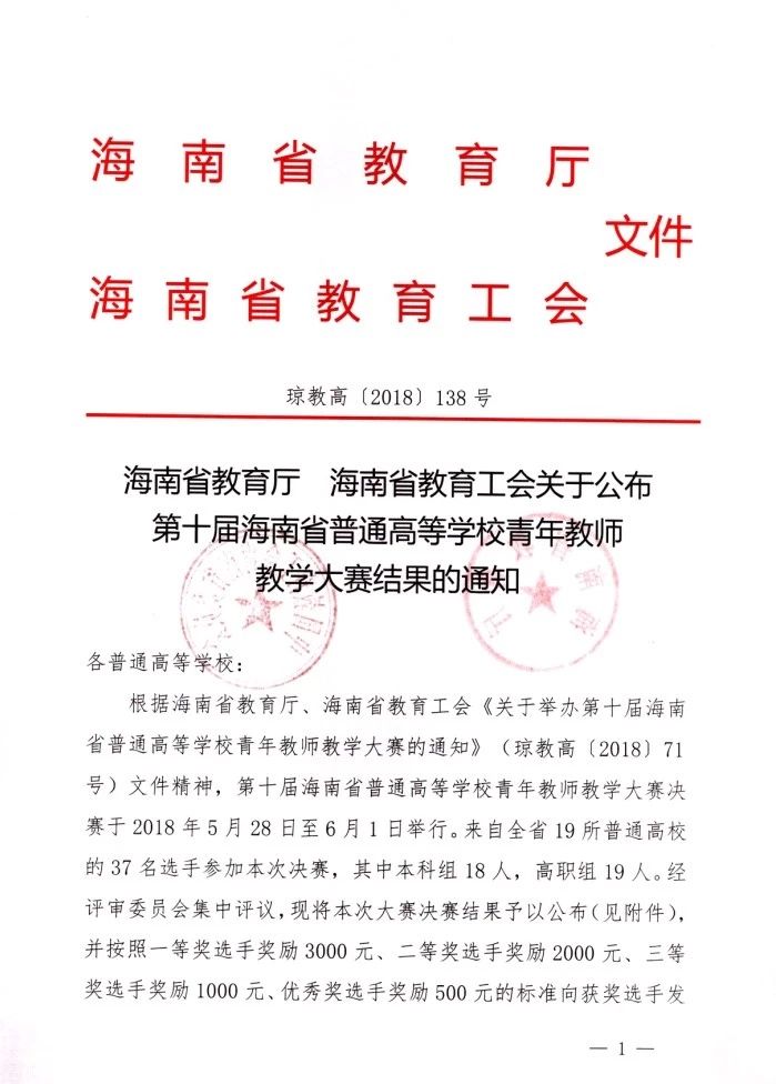 本次比赛成绩的取得是两位老师坚持学习、重视教学、不断钻研取得的结果,是对教师的付出与表现的重要肯定及荣誉,更是学校教务处及各职能部门、二级学院、专家团队共同付出的结果。海南省青年教师教学大赛,不仅检验了青年教师的教育教学水平,也是为培养更多优秀的青年教师提供了一个很好地锻炼的平台及展示交流的机会。此次我校蝉联海南省青年教师教学大赛一等奖,是我校近年来内涵建设和师资建设取得丰硕成果的充分证明。学校重视青年教师队伍的建设,青年教师是学校的未来,学校以此为契机,总结本次青年教师教学大赛经验,调动和发挥教学研究小组、教学比赛小组的力量,积极宣传推广,以促进我校青年教师快速成长。