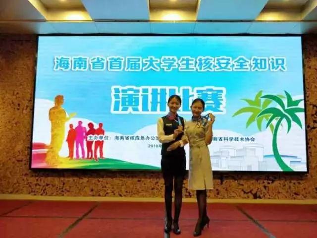 大家是否还记得5月22日学校举办的以“核文化”为主题的演讲比赛呢?当时空乘1704班的赵莹和韩雨萌两位同学分别斩获校赛的冠军和亚军,作为代表被选送参加海南省首届核安全知识演讲比赛。