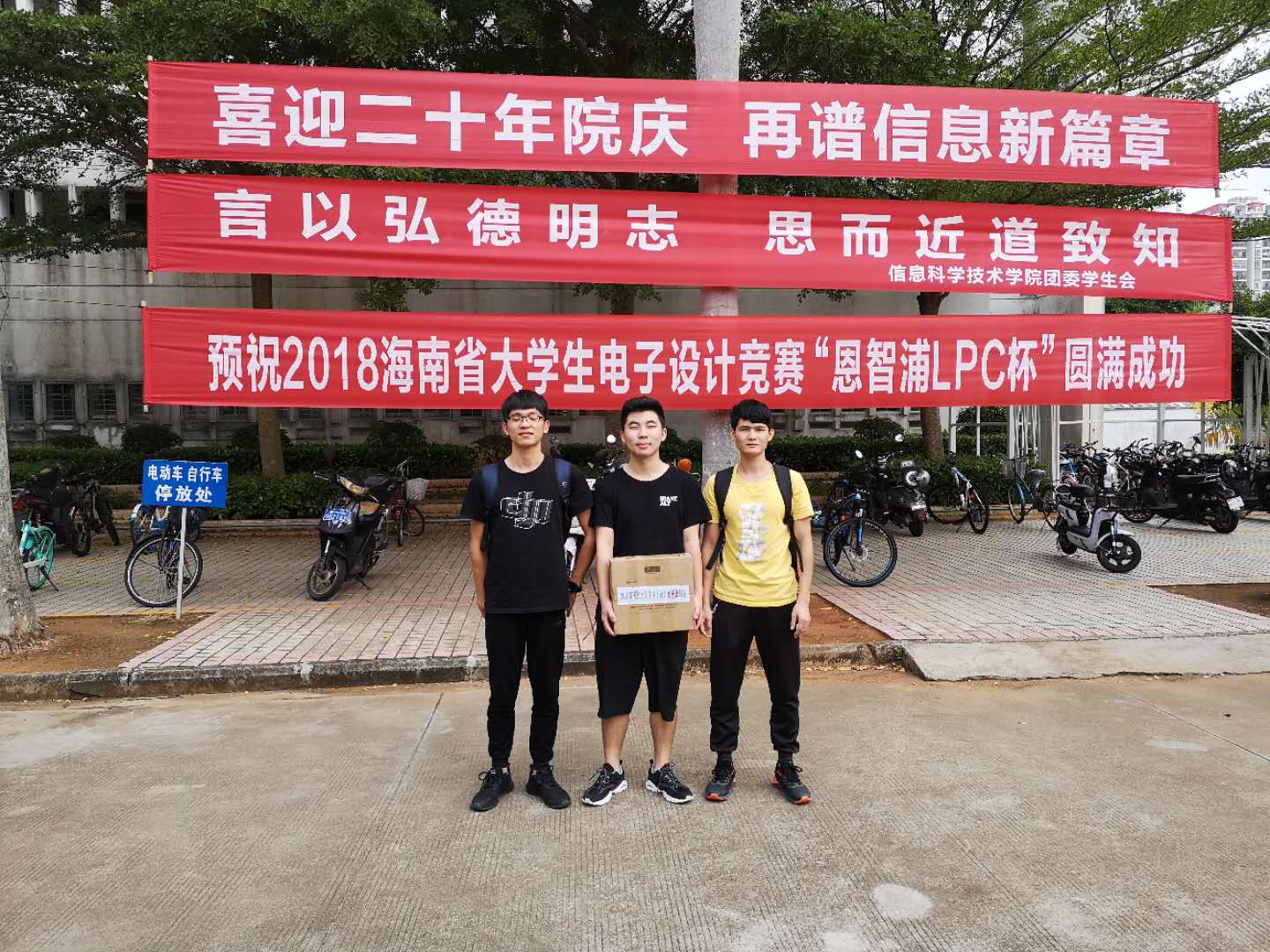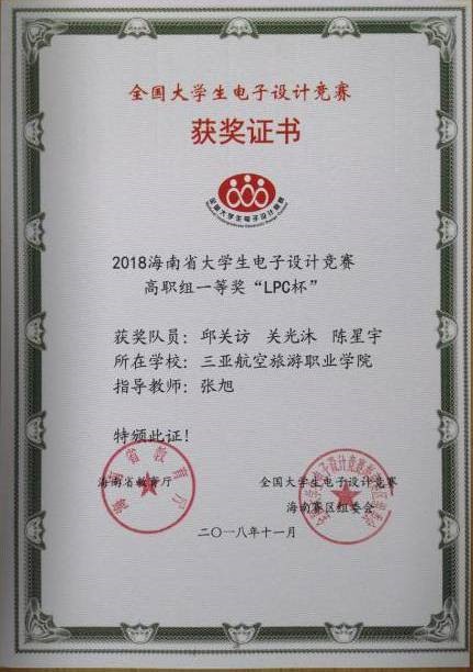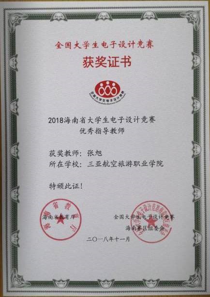 比赛于2018年10月17日上午8:00至20日晚上20:00,在我省各参赛学校有序开展,共有来自省内10所高校的209支参赛队627名学生参加竞赛。我校共组织6支代表队18名学生参加比赛,参赛学生3人一组在4天的时间里根据所选择的题目分工合作,共同完成方案设计、实物制作、论文撰写等工作,最终将设计作品提交评审。按照大赛组委会要求,我校从6支参赛队伍中推送2支优秀队进入最后的综合测评。2018 年10月27日,在海南大学信息科学技术学院经专家评委对各高校推荐的优秀作品进行复测,最终,我校2支优秀参赛队分别获得高职组省级一等奖和二等奖,指导教师张旭(电子)获得优秀指导教师奖。大赛组委会还于2018年12月26日在海南省软件职业技术学院举行了颁奖典礼,至此,本年度的比赛圆满结束。