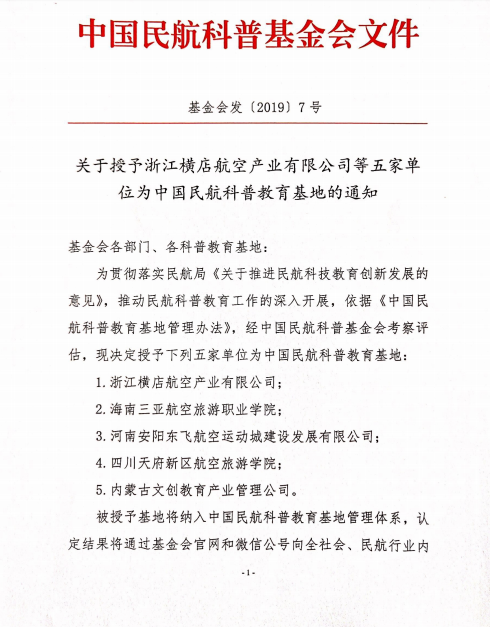 7月17日,中国民航科普基金会下发文件,我校正式获批为中国民航科普教育基地。中国民航科普基金会旨在支持民航科技教育,民航行业文化建设,支持空域资源合理开发利用和民航节能减排,支持通用航空事业发展,支持其他与民航相关的公益事业。民航科普基地是基金会发起的传播民航文化,弘扬民航精神的重要平台。