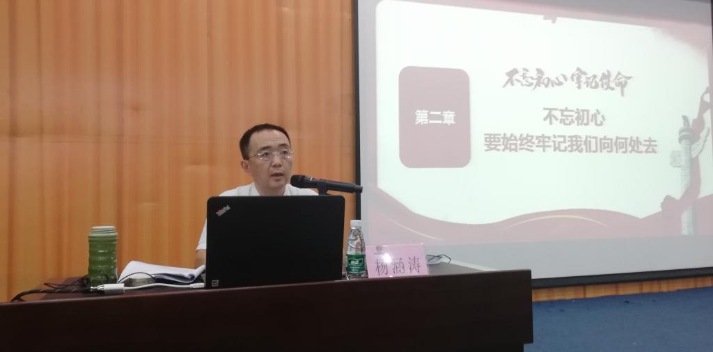 学校党委书记、董事长兼校长杨涵涛同志以《新时代,我们如何做到不忘初心》为题,从“不忘初心,要始终铭记我们从哪里来”“不忘初心,要始终牢记我们向何处去”“不忘初心,要始终谨记我们该怎么走”三个方面为学校全体党员和部分教职工、学生代表作了精彩的专题党课辅导,结合学校工作实际和自身学习体会,向全校师生发出了“正确选择,坚定目标,改进方法,实现人生理想”的殷切期望。杨校长的讲课,站位很高,落脚很实,主题鲜明,内容丰富,意义深远,紧贴主题教育要求和学校实际情况,指导性针对性操作性都很强,为学校开展好主题教育活动,抓好教学管理实践工作提供了遵循和方向。