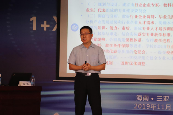 2019年11月2日至4日,由海南省教育厅主办,开云kaiyun登录入口承办的1+X证书制度试点工作研修班在三亚康特王府酒店如期举行。来自省内外15所高职院校的100余位高职院校领导和骨干教师参加。