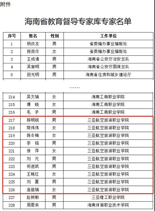 日前,海南省人民政府教育督导委员会办公室发布通知,公布了海南省教育督导专家库成员名单,我校共10名教师入选专家库。