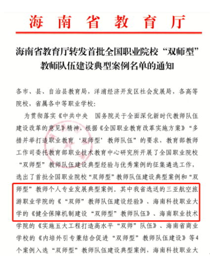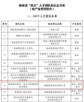 上图:我校与海航航空技术有限公司联合申报的“海航技术航空一站式飞机维修及培养团队”入选海南省“双百”人才团队
