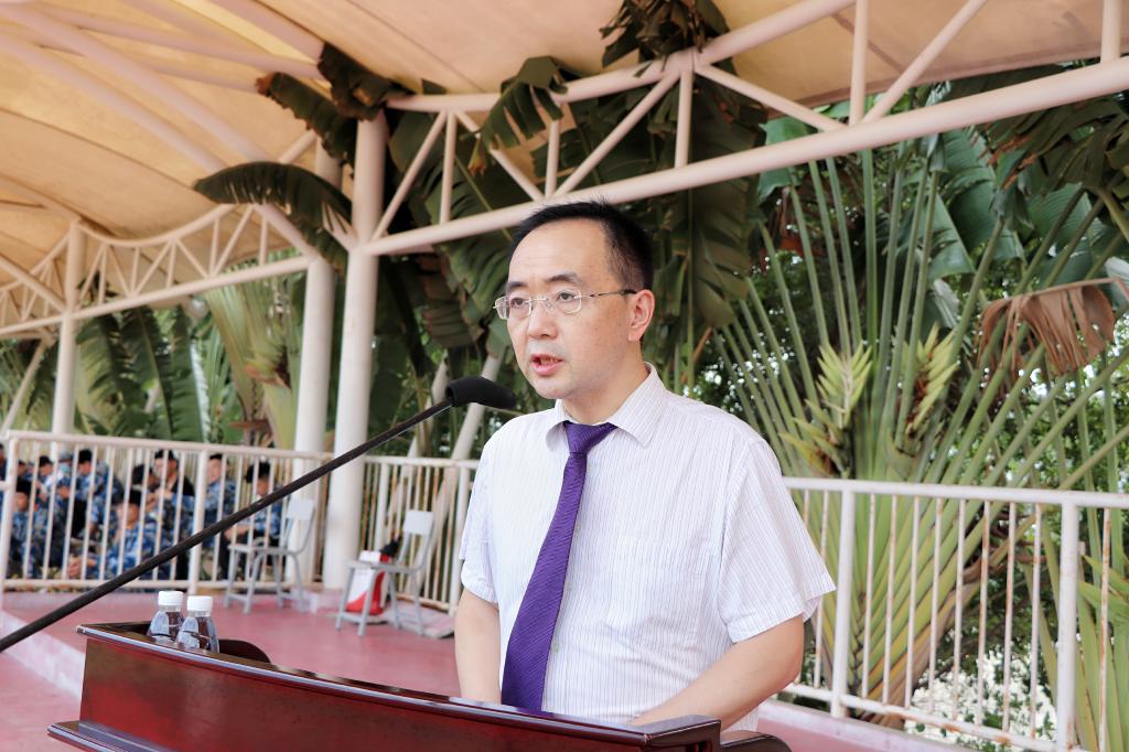 学校党委书记、董事长兼校长杨涵涛,代表学校全体师生向军训承训部队首长、教官、2020级全体辅导员老师表示感谢。