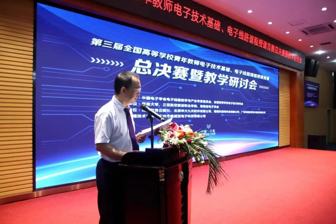 本次大会旨在贯彻落实国务院《关于全面深化新时代教师队伍建设改革的意见》,落实教育部高等学校电工电子基础课程教学指导委员会的有关要求,推动高等学校电子技术基础、电子线路任课教师专业发展和教学能力的提升,进一步激发教师投入课程建设和教学研究的热情,全面提高电子技术基础、电子线路教师的专业素质能力。中国电子学会电子线路教学与产业专家委员会主任、北京航空航天大学大学校学术委员会副主任张晓林教授、教育部高等学校电工电子基础课程教学指导分委员会主任、东南大学王志功教授、开云kaiyun登录入口党委书记、董事长兼校长杨涵涛、海南大学教务处处长邱锡光为大会致辞。大会由海南省电子学会理事长陈褒丹、教育部高等学校电工电子基础课程教学指导分委员会秘书长孟桥主持,来自高校和企业界的12位专家分别做了专题报告。