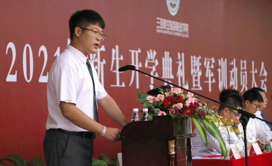 2021级的新生代表范斌同学表达了对进入新学校,开始新生活的憧憬和期待,并号召全体新生把握好心态和方向,坚持最初的理想,挖掘更好的目标,树立更为先进的思想,提高专业技能、切莫虚度大学时光。