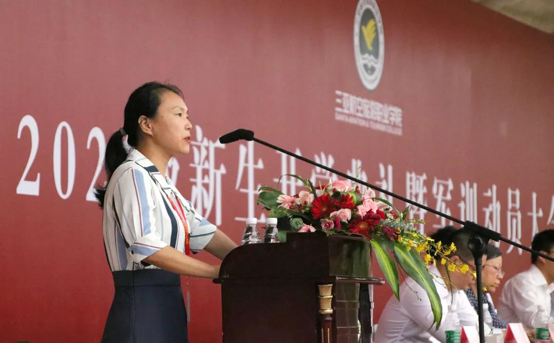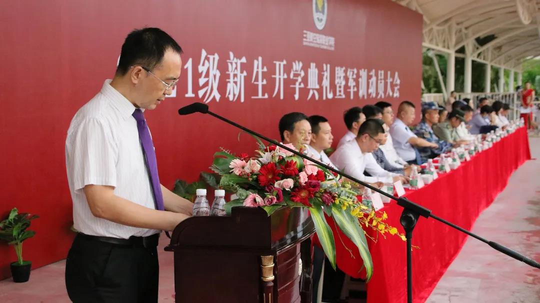 学校党委书记、董事长兼校长杨涵涛在开学典礼上讲话。杨校长特别指出,“在百年未有之大变局中,我们的同学们正深度参与其中。”一是职业教育面临着历史上最好的发展时期,二是同学们正亲身经历全球最大自由贸易港如火如荼的建设。同学们的职业发展和才华施展都有了广阔的舞台和天地。随后,杨校长结合校友实例,向同学们提出了三点希望:“希望你们积极主动地投身时代洪流,把努力的汗水挥洒在祖国大地上。希望你们积极努力地学习知识技能,培养安生立命的技术技能。希望你们继承并发扬三亚航院人的精神,爱岗敬业、精益求精。”