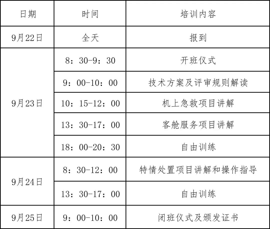 为深入贯彻落实《国家职业教育改革实施方案》,进一步提升航空服务类专业建设和人才培养质量,全国航空工业职业教育教学指导委员会将于2021年10-11月举办2021年全国航空职业院校空中乘务技能大赛复赛及决赛。为保证参赛效果,大赛组委会特举办赛前培训。