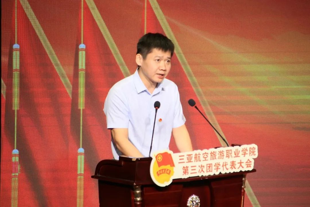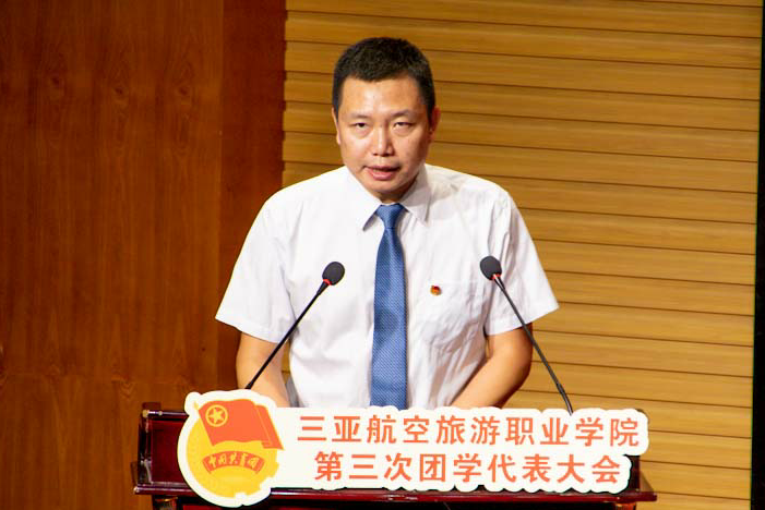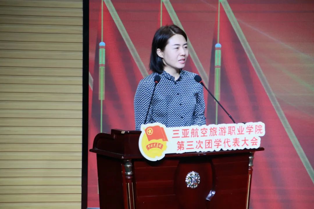 海口经济学院党委委员、团委书记杨娟娟代表海口经济学院团委及各兄弟学校团委,向我校第三次团(学)代表大会致以热烈的祝贺!杨娟娟书记高度赞扬了我校坚持“承中华之美德,赋有用之技能,养航业之习惯,谋优质之就业,育企业之专才”的办学理念,在航空、航海、旅游特色专业建设和人才培养方面取得的重要成果,源源不断地为社会输送大批优秀人才,值得各兄弟院校学习和借鉴。她祝愿两校及两校青年的友谊之树长青!衷心希望以此次大会为契机,加强合作,携手并进,共创佳绩!