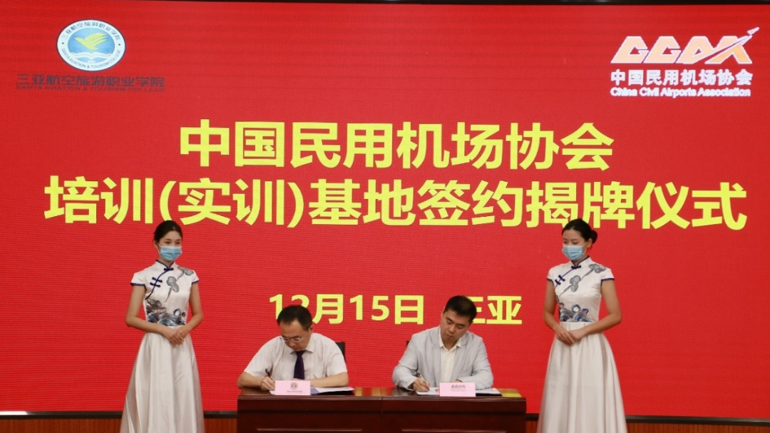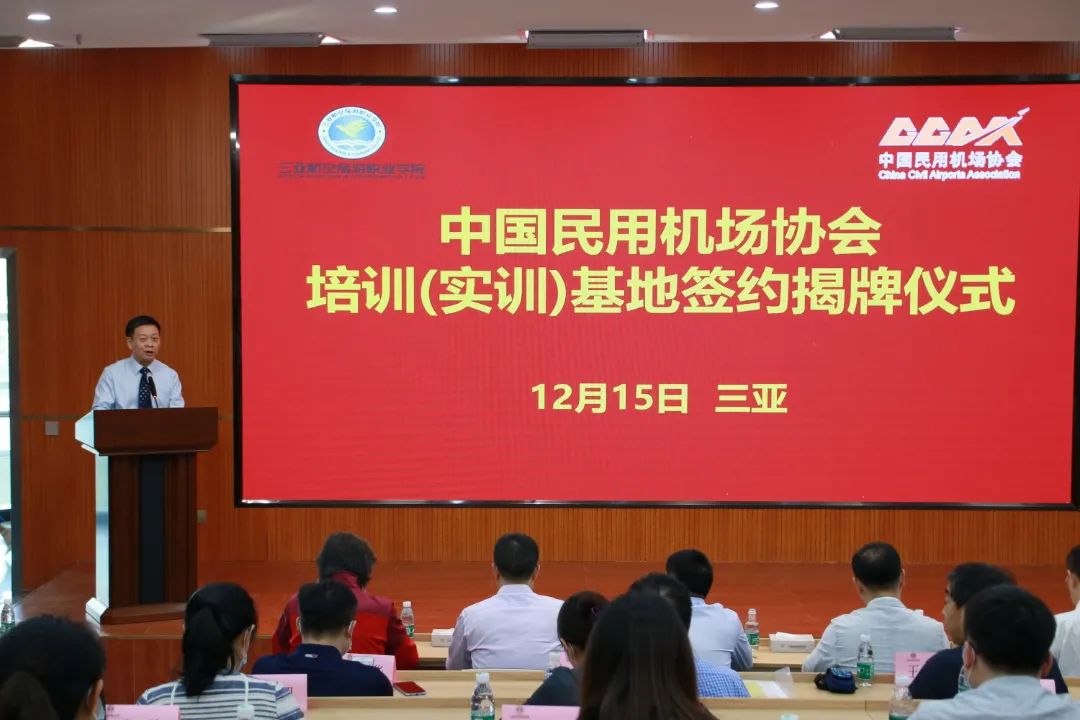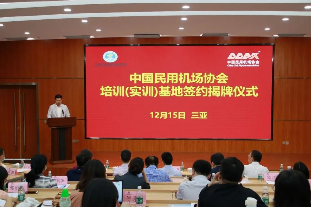 12月15日,开云kaiyun登录入口与中国民用机场协会合作签约揭牌仪式在我校一教306报告厅举行,中国民用机场协会培训外联部吴洪霄部长与我校党委书记杨涵涛董事长兼校长签订中国民用机场协会培训(实训)基地协议。民航三亚监管局副局长赵红旗、三亚凤凰国际机场副总裁丁航出席仪式并一同揭牌。