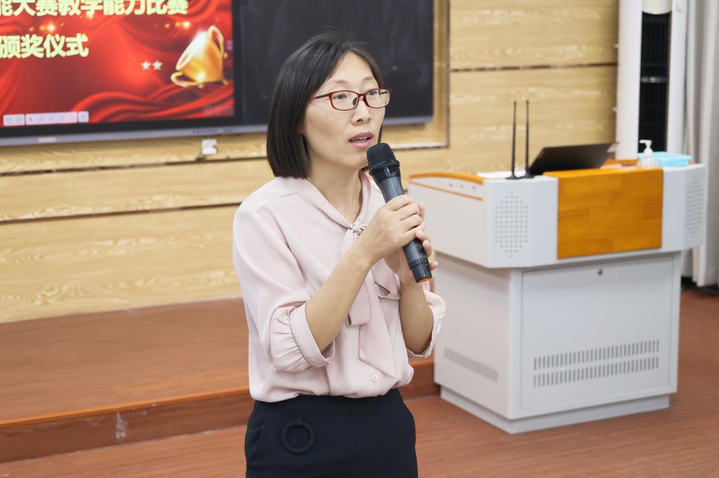 最后,教务处处长樊伟伟教授用三个提高、两个改进、一个期盼对此次比赛进行了总结。她表示,通过此次比赛可以看出我校教师教学竞赛参与度明显提高,课程团队教学能力明显提高,参赛作品质量明显提高,但仍存在不足,需要从“实”和“新”两个方面继续改进,打造更加精彩的作品,期盼获奖团队能够在更高级别的比赛中取得更加优秀的成绩。