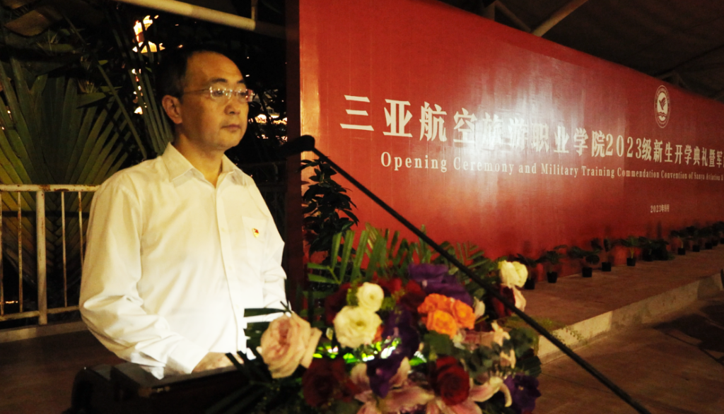时维九月,金风送爽。经过了“十年寒窗磨一剑”的荆棘载途,度过了“刻苦训练扬风采”的军训时光,2023年9月23日,三亚航院召开2023级新生开学典礼暨军训总结表彰大会。91103部队王振少校到校观礼。学校党委书记、理事长兼校长杨涵涛,党委副书记、副校长岳军,学校领导班子及各部门第一负责人、学工系统全体人员出席检阅大会。大会由副校长岳军主持。