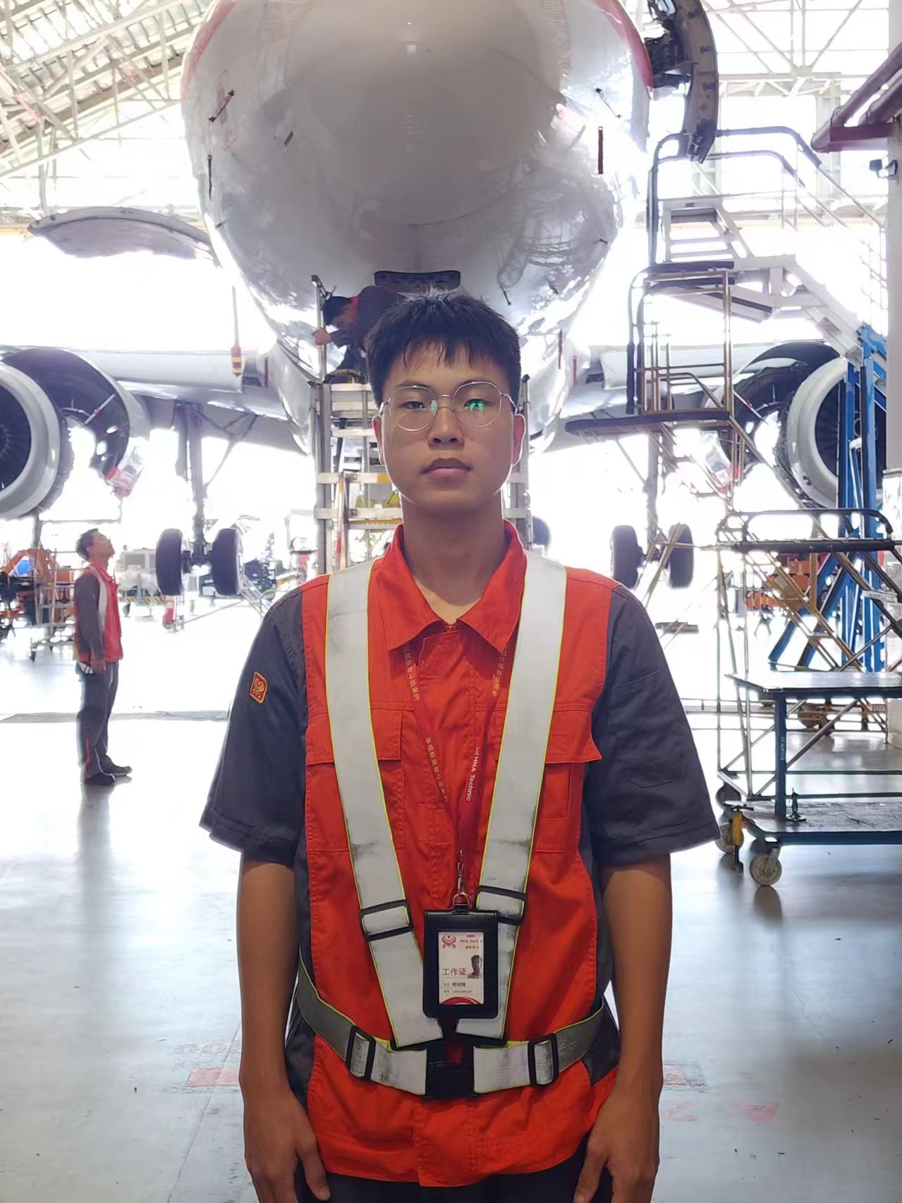 照片里这个酷似电视剧《冲上云霄》的场景,就是三亚航院飞机机电设备维修2201班的郭绍铭目前工作的地方——大新华飞机维修服务有限公司。