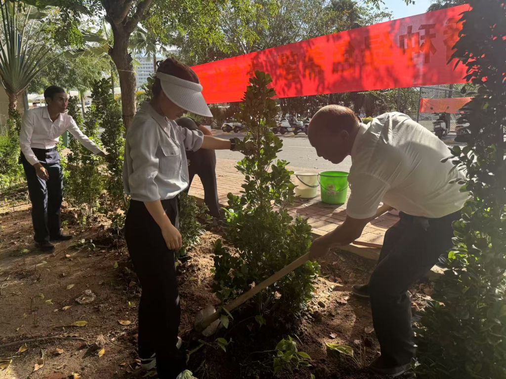 在这春回大地,万物复苏的美好时节,为深入贯彻落实生态文明建设理念,增强教职工环保意识,共筑生态校园,3月12日植树节当天,三亚航院组织开展了2025年植树节教职工植树活动。三亚航院党委副书记、副校长岳军,校长助理王利组织领导教职工代表齐聚校园,共同挥锹铲土,播种绿色希望,为校园增添了一抹新绿。