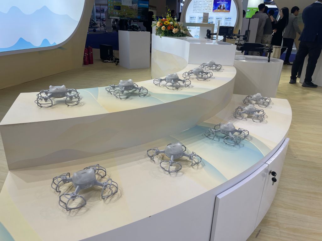 在此次大会现场,三亚航院展示的多款明星无人机教学设备吸引了众多观众驻足咨询。其中,大疆经纬M300无人机作为商业级无人机的代表,凭借综合性能强的优势,成为学校开展无人机飞行操控练习、负载挂载调试和智能巡检规划等实操教学的理想设备;曾助力学院在金砖国家职业技能大赛中斩获佳绩的智能战鹰X680无人机,其稳定精准的飞行性能和多维度观察能力,充分展现了学院在无人机技能竞赛领域的突出实力;而创客火编队无人机及自研编队飞控软件,则以可视化编程的便捷操作方式,体现了学院在无人机教学与中小型表演场景应用中的创新探索。