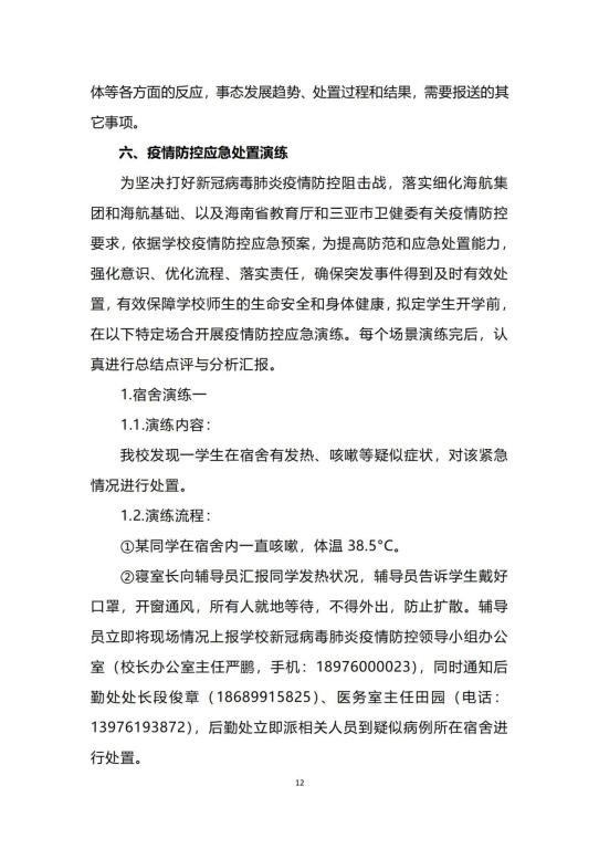 三亚航院关于落实疫情防控工作要求的通知
