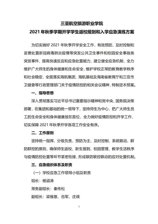 开云kaiyun登录入口2021年秋季开学学生返校报到和入学应急演练方案