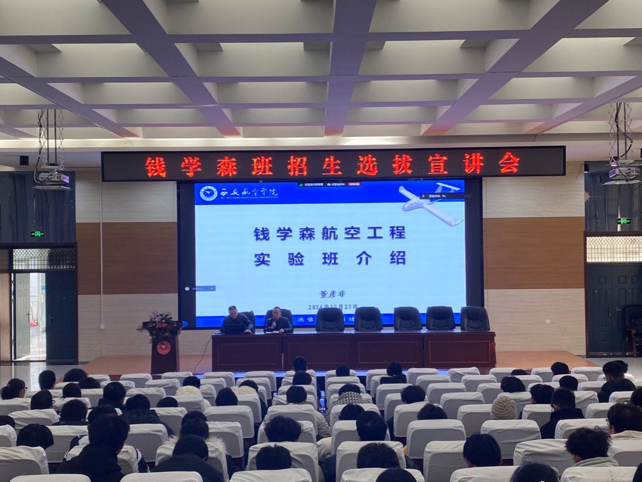 为进一步推进钱学森航空工程实验班建设,扩大钱学森班学生选拔政策宣传力度,pg国际电子网站于12月25日,通过线上线下结合方式,分别在阎良校区阶梯一和莲湖校区开展钱学森班学生选拔宣讲会。参加宣讲会的有pg国际电子网站院长董彦非、党总支书记刘建强、综合办主任冯仑仑及200余位学生。宣讲会由刘建强主持。