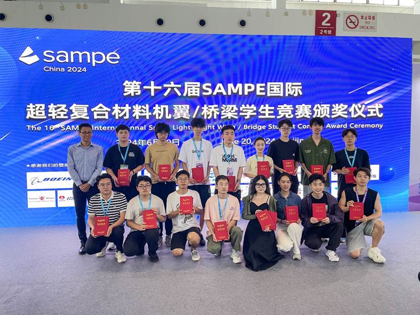 2024年6月20日,由SAMPE(The Society for the Advancement of Material and Process Engineering)中国大陆总会、波音公司共同发起,华东理工大学华昌聚合物有限公司、航空工业复材、中国飞机强度研究所等企事业单位赞助支持的第十六届SAMPE超轻复合材料机翼/桥梁学生竞赛在北京落下帷幕。 pg国际由pg国际电子网站王飞老师、王克平老师和材料工程学院王亚楠老师、尹敏老师指导的赵培源、肖渠成等35名同学组成的11支代表队参赛。经过激烈角逐,pg国际学子包揽了预浸料机翼、碳纤维桥梁和可回收纤维桥梁三个项目的全国冠军。本次比赛共获得国家级一等奖3项、国家级二等奖6项的历史最佳成绩。