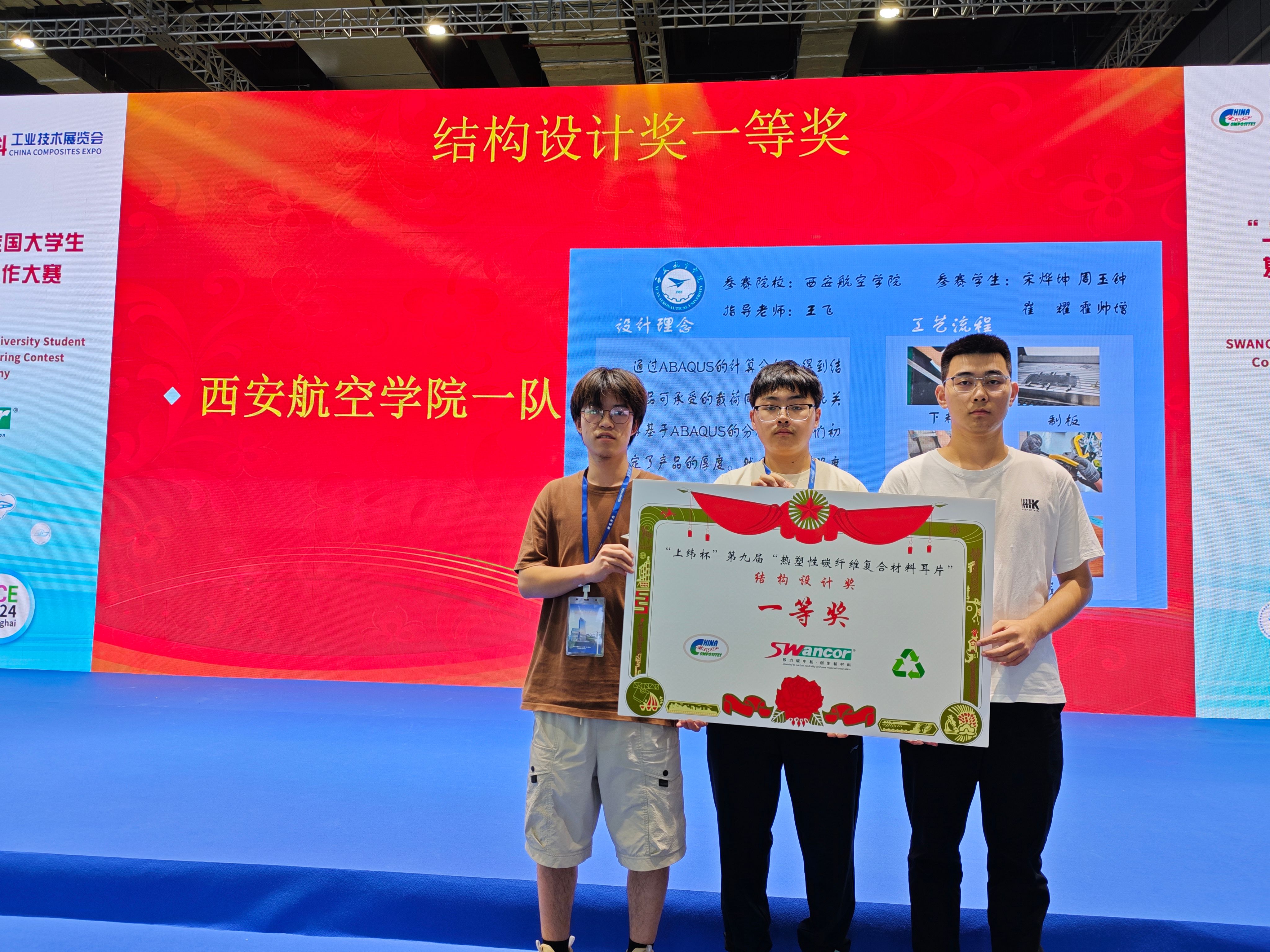 近日,“上纬杯”第九届全国大学生复合材料设计与制作大赛在国家会展中心(上海)成功举办,由pg国际pg国际电子网站王飞老师指导的宋烨坤、周玉钟等11名同学组成的3支代表队参加比赛。经过激烈角逐,pg国际电子网站一队获得国家级一等奖1项。