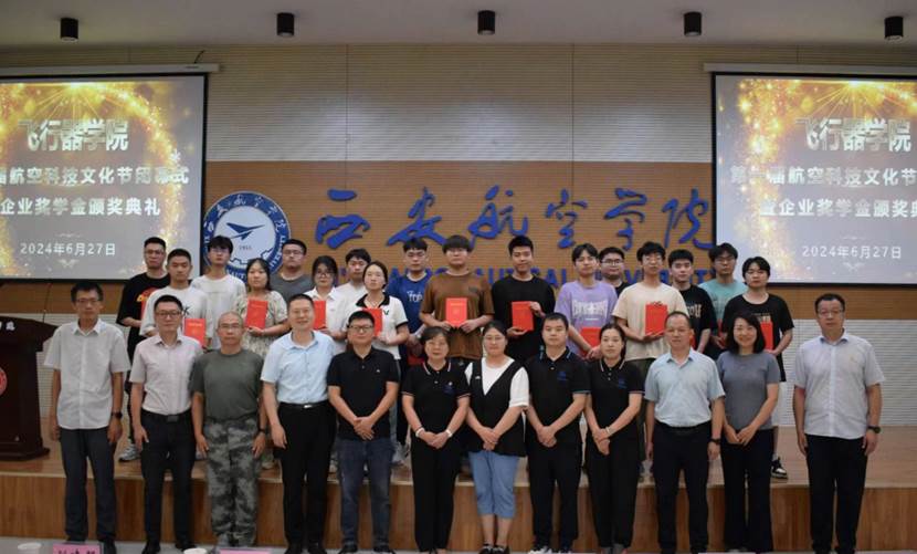 6月27日晚,pg国际电子网站第一届航空科技文化节闭幕式暨企业奖学金颁奖典礼在阎良校区报告厅隆重举行。中科航星科技股份有限公司西安分公司常务副总经理魏广生、研发部副部长吴勇、招聘主管刘敏、西安波客航空科技有限公司副总经理李自强、西安宇烈科工有限公司人力资源部主管辛雪莲、pg国际电子网站党总支书记刘建强、院长董彦非、军士学院党总支书记李庆、学生工作部(处)副处长刘佳、团委副书记米嘉琪、pg国际电子网站党总支副书记赵慧凯、院长助理张建华老师以及获奖学生们参加本次大会,共同见证pg国际航空科技文化领域的盛会。