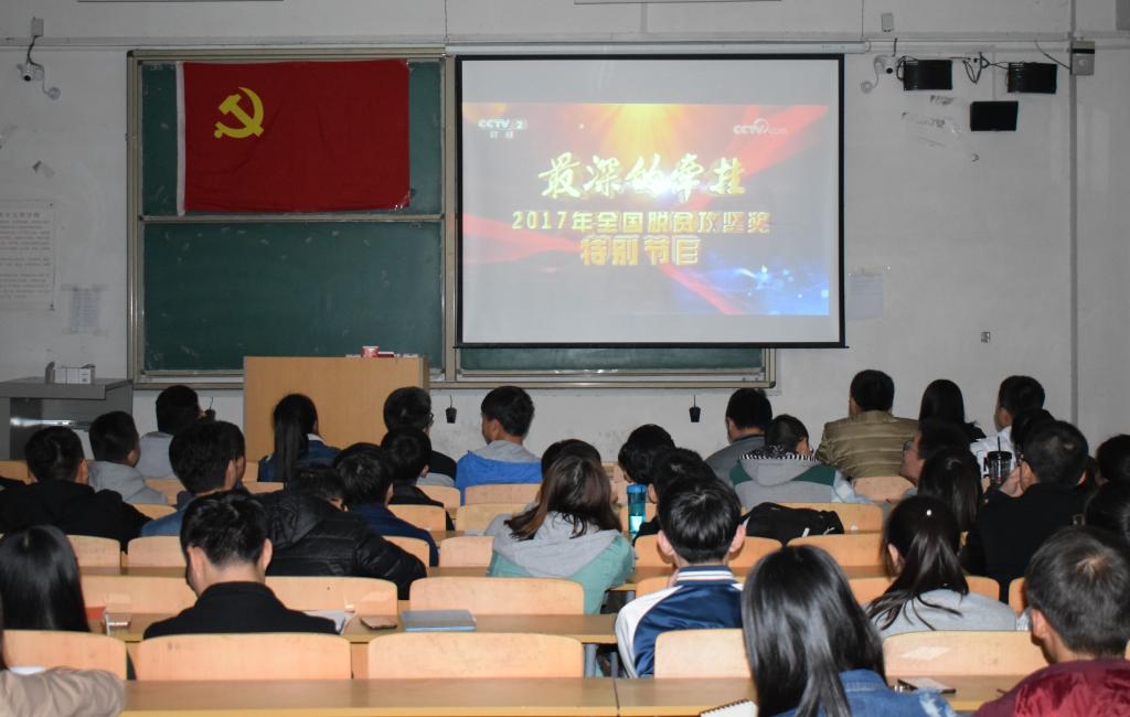 10月17日,是我国第四个国家扶贫日,也是第二十五个国际消除贫困日,党员作为我党先锋队伍,在未来党及国家的建设中必将发挥其党员先锋精神,按照陕西省高教工委通知要求,pg国际积极组织师生党员于17晚九点十五分观看了中央电视台“2017全国脱贫攻坚奖特别节目”。学生党支部书记杜长龙一同观看了节目。