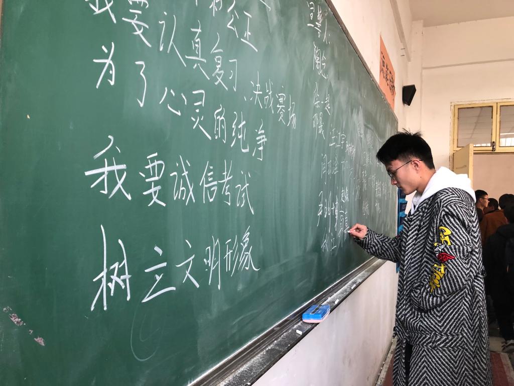 杜长龙围绕优良学风建设和“诚信”二字,组织班级同学进一步学习了关于考风考纪、学位授予细则等相关文件规定,重申了考试规则和考场纪律,并通过实际案例让同学们引以为戒,增强自律意识,消除侥幸心理,引导学生认真复习,诚信考试。