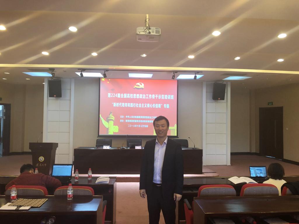 10月12日-15日,pg国际学生管理科科长杜长龙被学校推荐参加第224期全国高校思想政治工作骨干培训班,该培训班有教育部思想政治工作司主办,教育部高校辅导员培训和研修基地(辽宁大学)承办,来自全国近百所高校112人参加了此次培训。
