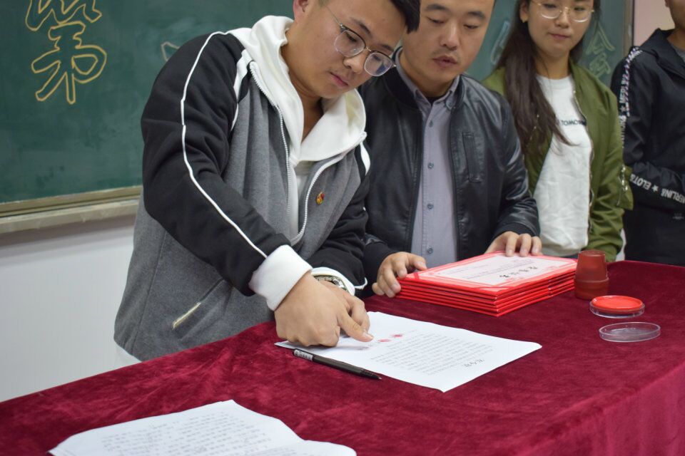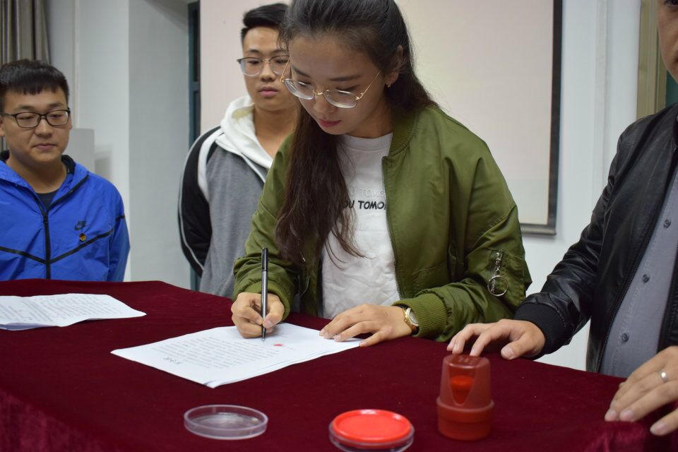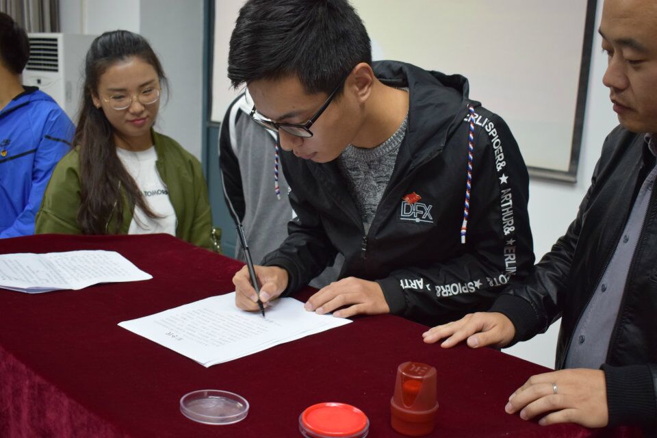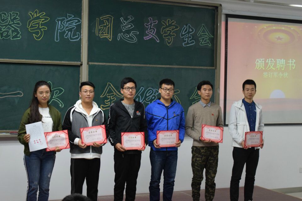 大会最后一项,主席团及各部门干部签署军令状,并由冯仑仑为他们颁发聘书,全体掌声雷动。随后冯仑仑发表重要讲话,对全体学生会每一位成员加以鼓励,告诫新一代学生会干部干事要有好的态度、讲规矩、以高标准要求自己。