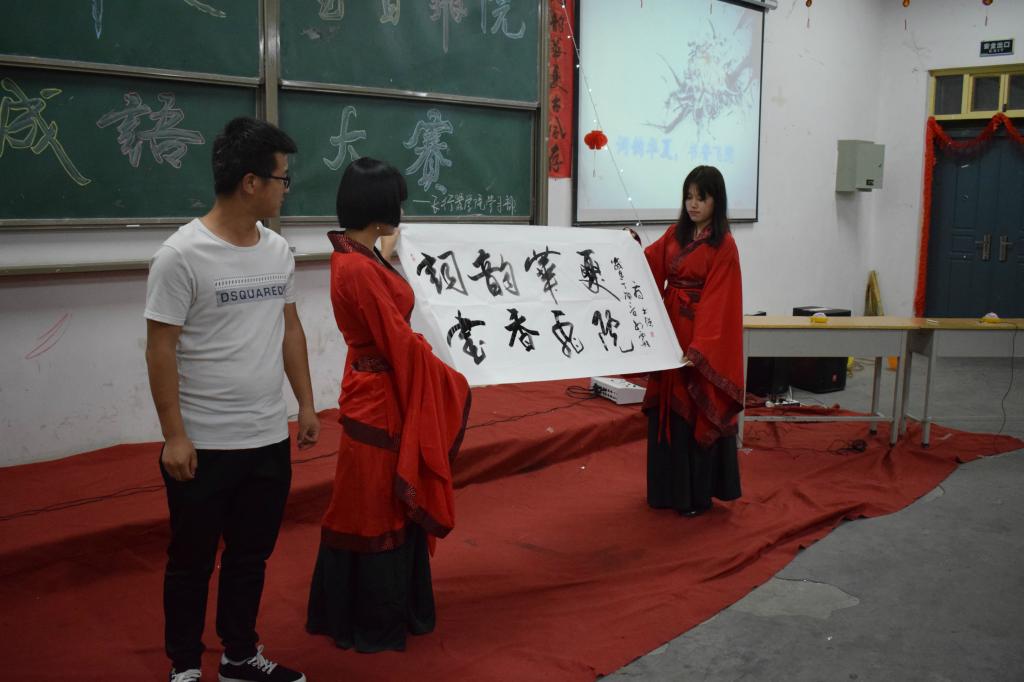 比赛分为三个环节,分别是看图猜成语、你比我猜和抢答环节。选手们在比赛过程中充分展现了中华传统诗词文化的无穷魅力,汉服社的汉服展示和书画社的现场书法让同学们充分领略了传统文化的卓越风采。