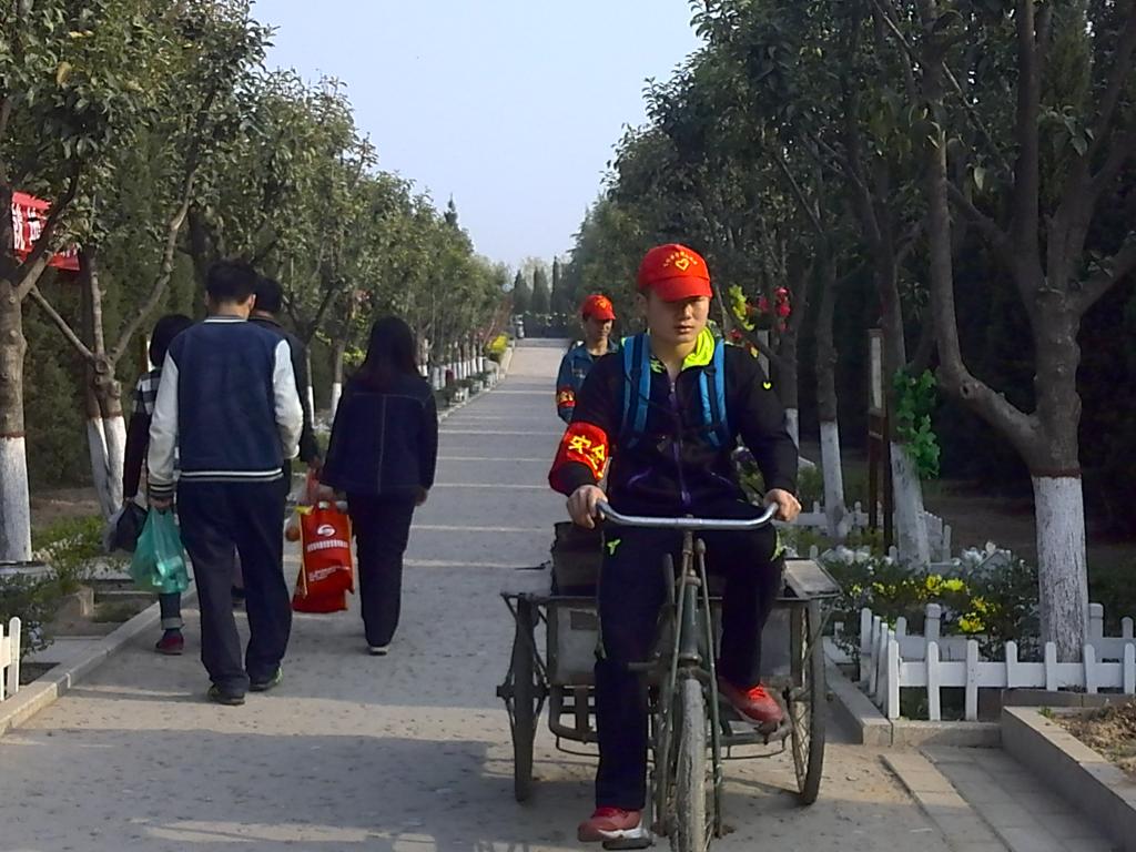 志愿者们每天7:05在校门口集合,有序前往陵园。到达后,根据陵园工作人员的安排开始每天的服务工作:有的倾倒灰桶,有的疏导交通,有的对烈士墓碑进行了认真擦拭,还有的对周边环境进行细致的打扫……