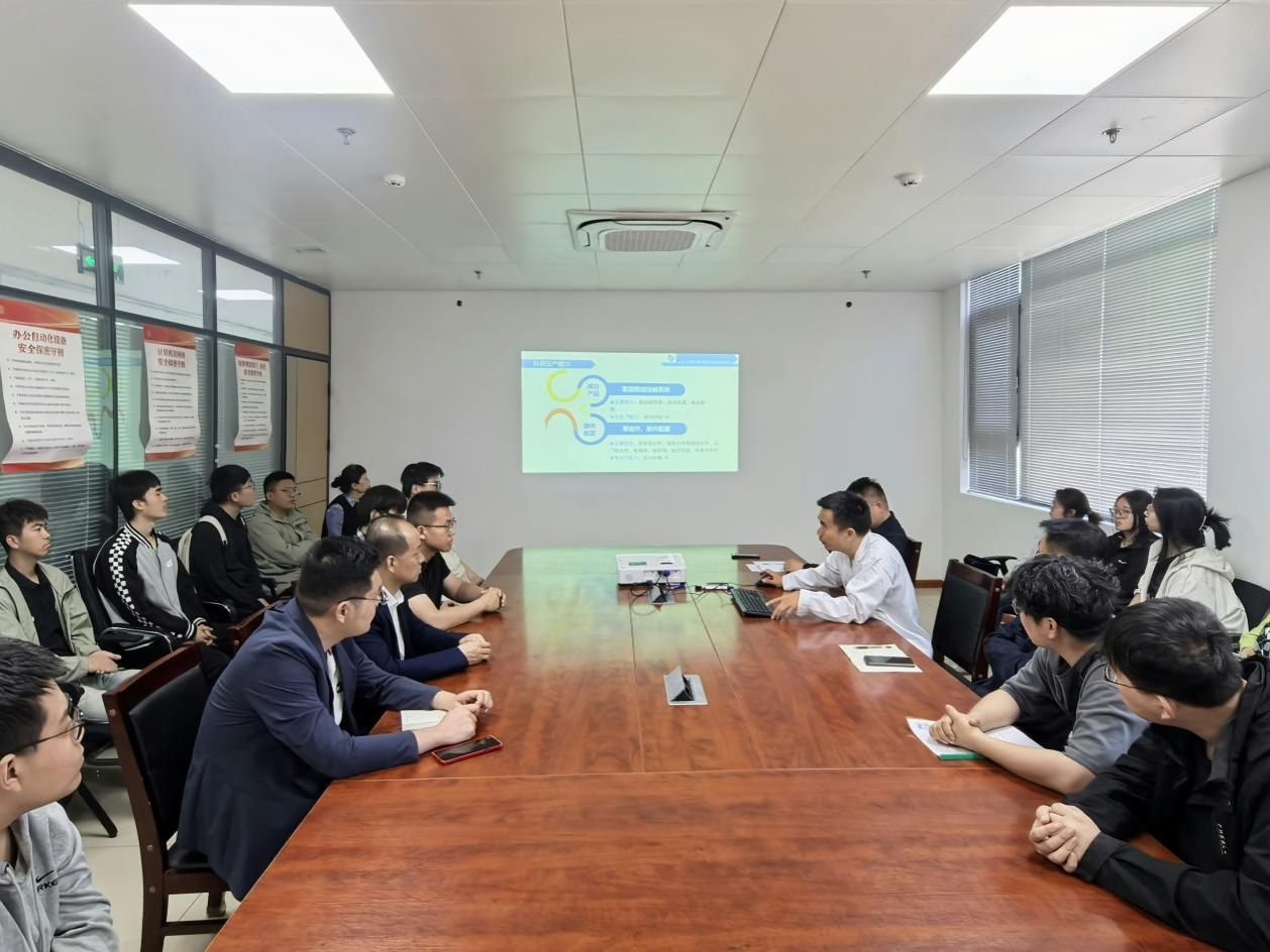 文红武对刘建强一行表示了热烈欢迎,介绍了公司发展历程、技术特点、科研能力及主要产品等情况。刘建强对文红武及公司对学院的关心与支持表示了感谢,详细介绍了pg国际电子网站发展历程、专业设置、培养目标、就业概况及科研团队等情况,希望能与公司在人才培养、实习就业、科学研究、校企合作等多方面进行了深度合作。机械学院谢肖老师对机械学院相关专业的学生培养做了交流。文红武带领师生参观了公司的产品实物和工作现场。公司人力部对有意向到公司就业的十余名学生进行了面试。