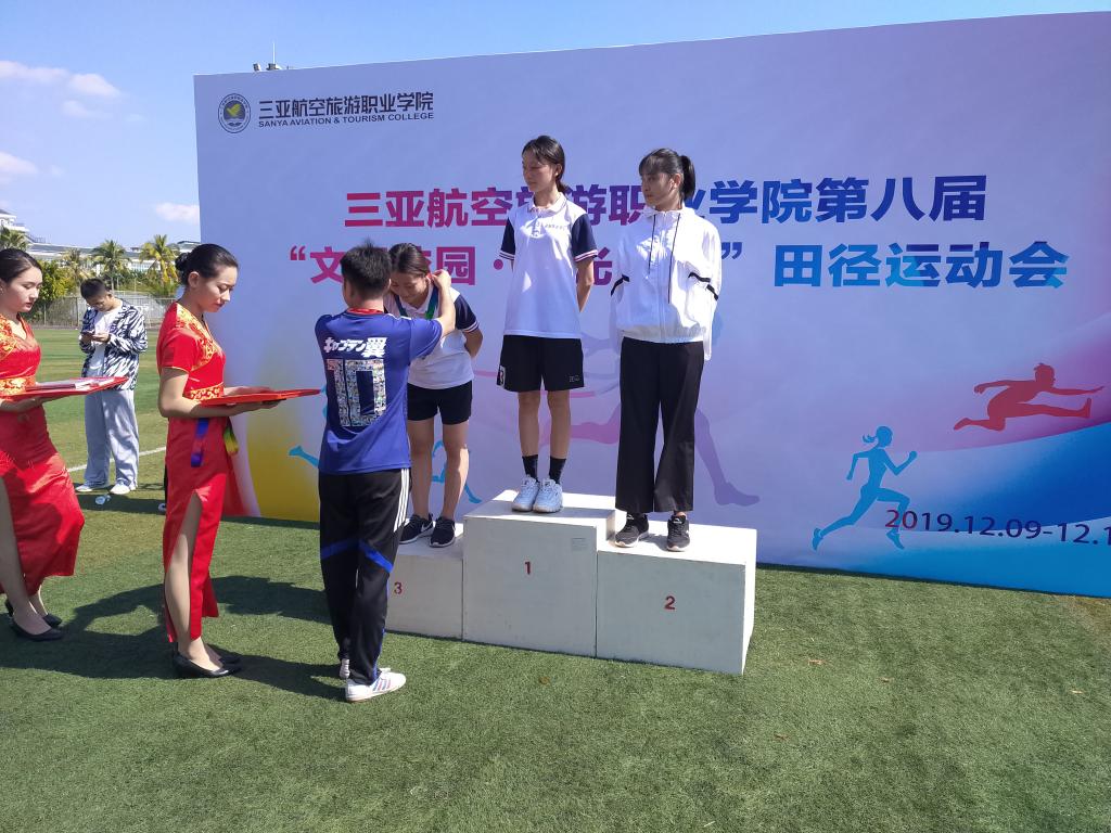 王祥瑞在田径运动会中获得跳远比赛三等奖(左一)
