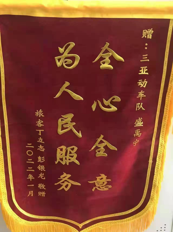 2月26日上班期间,有2名旅客携带较多行李乘车。盛禹宁主动上前协助旅客提拿行李,耐心回答旅客问题,细心告知每站停留时间,热情帮助旅客拍照留念,下车时将旅客送至站台并礼貌道别。细致周到的服务赢得了两位旅客的一致好评,2月28日,两位旅客专程送来锦旗,再次对盛禹宁的优质服务表示称赞与感谢。