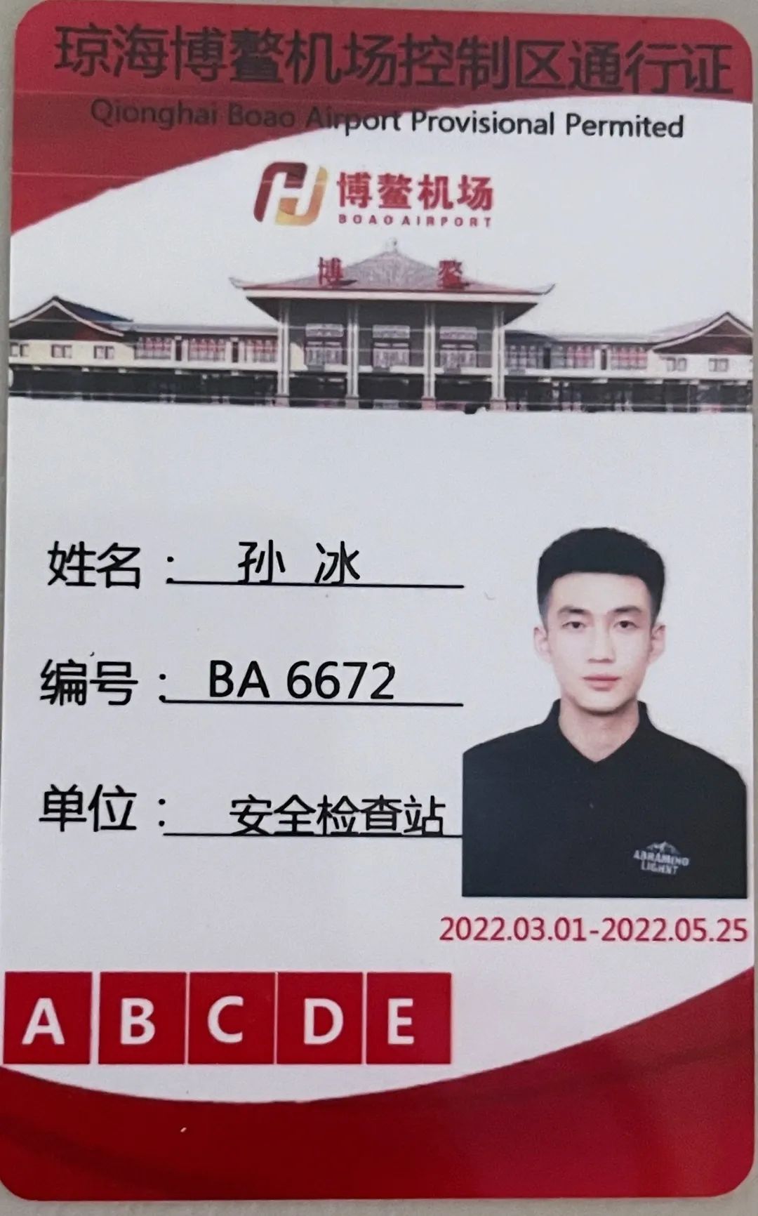 2022年2月底,孙冰凭着平时优秀的表现,被老师推荐为2022年博鳌亚洲论坛志愿者。志愿工作期间,他主要承担博鳌机场的安全保障工作。他首先认认真真地参加了培训,经过上百次的反复学习操作,熟练掌握了一次性医用橡胶手套、口罩、护目镜戴法,并牢记理论知识和实践操作流程。经过严格的培训之后,孙冰正式在博鳌机场开始工作,并被分配到机场3号出口处。他不仅要为到达旅宾测体温、查健康码、行程码、核酸检测报告,还要检测旅客是否带有违禁物品等。每天下午是航班到达的高峰期,他都会主动提前一小时等候在国内到达厅门口,一丝不苟地检查每位旅客,生怕有一点遗漏,完全没顾及“大白”防护服里面被汗水打湿到可以拧出水的工服,更没有时间去整理衣服,渴了累了一直忍着,一站就是五六个小时,他不但没有怨言,而是满满的欣慰。