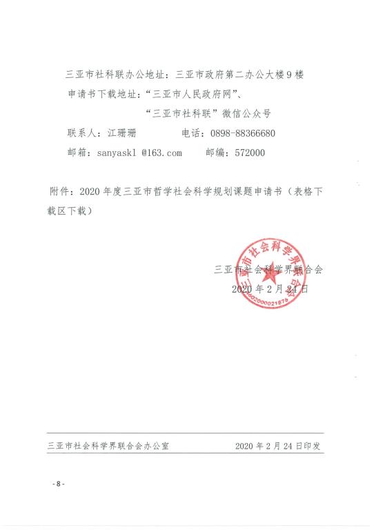 上一条:《三亚市社科联关于2019年度哲学社会科学优秀成果评奖工作的通知》(三社科[2020]3号) 下一条:关于第二次延迟开学的通知