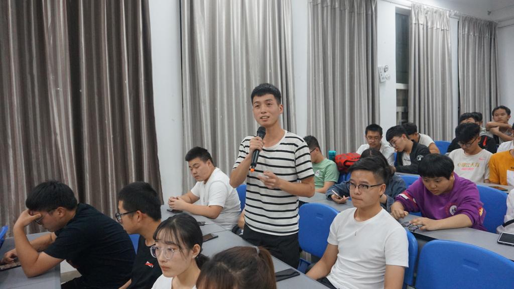 为了让学生们认清现状,学会规划自己学习生活,首先杨超群结合自身经历,向学生分享了自己的宝贵经验,他讲到考研不仅能提高自身学历,让自己接受更高等的教育,更深入的学习知识,还会对自身所学专业有一个更深更细的了解与认知,对自己的未来发展方向有更明确详细的规划,还强调考研可以拓宽自己的视野和人脉,让自己有更广的交际圈。他着重讲到,要想成功考研,那么在本科阶段就要打好基础,认真学习专业课,这对于以后考研和找工作有很大的帮助。杨超群鼓励学生在学习中要有撸起袖子加油干,努力思考认真观察的精神,保持一颗谦虚好学的心,以高昂的学习姿态来面对学业中的各种困难。在最后的答疑环节,有一位学生询问道:大一大二是否应该积极参加活动?他回答说:应该参加,但要合理安排时间,在不影响自己学习生活的情况下积极参加各种活动不仅能锻炼自己的能力,还能培养自己的兴趣爱好,一位大三同学问道:在大三怎样确定考研方向?他讲到:要根据自己的兴趣和对于专业的学习情况来确定自己未来的发展方向,要根据自身情况而论。