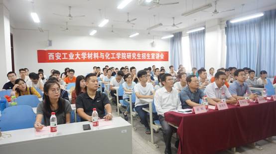 9月12日下午6时西安工业大学材料与化工学院研究生招生宣讲会在阎科楼271教室举行。西安工业大学材料与化工学院院长坚增运教授、副院长陈卫星教授、惠增哲教授以及郭永春教授出席此次宣讲会。pp电子党总支书记兼院长谢辉、学生管理科科长张赛以及大四辅导员史倩茹出席本次会议,pp电子2018届60余名本科生参加了宣讲会,宣讲会还吸引到很多低年级学生前来旁听。谢辉院长致辞并宣布会议开始。