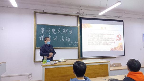 为了贯彻落实党的二十大精神,增强新时代大学生的责任感和使命感。11月27至29日,pp电子游戏官网党总支书记周华为材成、材科、复材三个学生党支部在4309教室召开题为“学习贯彻党的二十大精神,肩负新时代新征程的使命”的专题党课培训会,各支部全体党员、积极分子参加了培训会。
