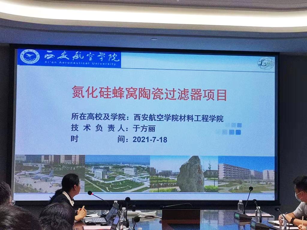 于方丽教授针对近年来机动车尾气、工业生产废气以及冬季取暖废气的排放等环境问题,作了《氮化硅蜂窝陶瓷过滤器项目》报道。她从项目背景、项目产品简介、产品关键技术、成果产权情况、项目团队情况、当前技术成熟度、资金预算、后期规划、应用市场和风险等方面做了详细的介绍和分析。重点强调了该项目产品的优势以及该项目的落地和推进对人民生活健康、经济和社会发展的重要意义。现场路演结束后,与会的数十家企业对该项目纷纷表示出高的评价,并针对此项目的开展与落地,与于教授进行了深入探讨。