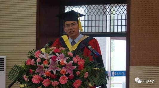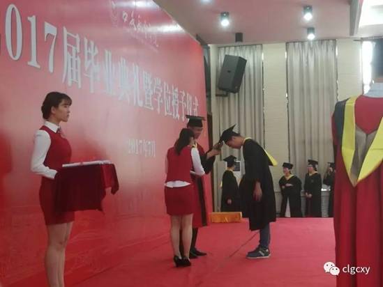 在悠扬的乐曲声中,pp电子党总支书记兼院长谢辉教授为pp电子2017届毕业生拨穗正冠,颁发学位证书。
