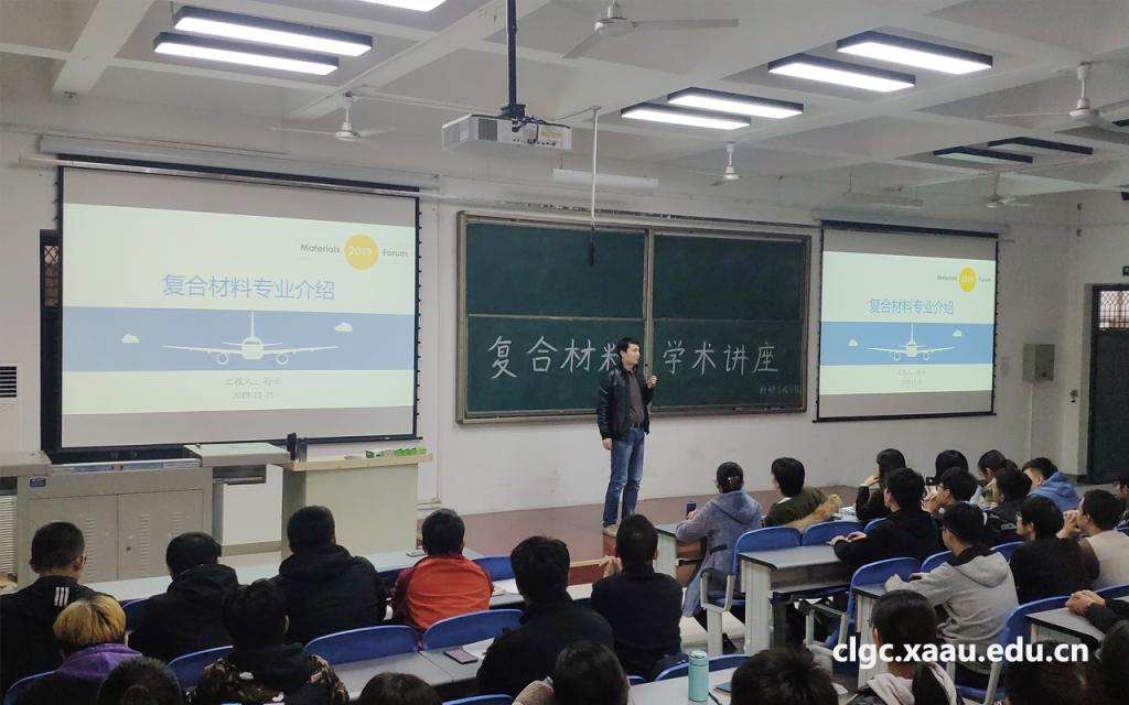 2019年11月21日下午,复合材料教研室于阎良校区阶梯教室举办了“复合材料大讲堂”,教研室主任孙乐、复材教研室全体教师及复材专业学生参加了此次学术讲座。讲座由孙乐和曹凤香主讲。此次学术讲座的主要目的是:一、提高学生对于复合材料专业的认知程度;二、希望学生能够了解复合材料专业的一些前言研究领域,培养学生对科研的兴趣。