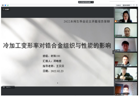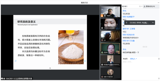 本次线上开题答辩,学院的老师和同学们都认真对待,积极沟通,在答辩过程中,老师们及时指出课题存在的问题和改进的方向;学生就课题中存在的疑问积极提问;各答辩组督促学生在家期间要熟悉论文方向以及各种测试方法,返校后实验进程会较为紧张,要提前搭建论文大框架。