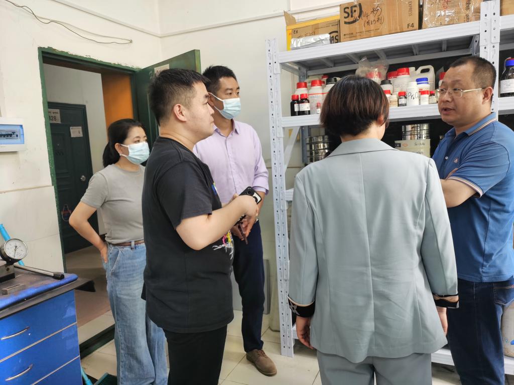 湖南大学材料科学与工程学院高朋召教授对于方丽一行的到来表示欢迎,并带领一行参观了高性能陶瓷/纳米磁性材料制备等相关实验室,对电/光催化材料及器件,纳米磁性材料及器件,先进结构与功能陶瓷等研究平台及测试分析仪器进行了介绍。