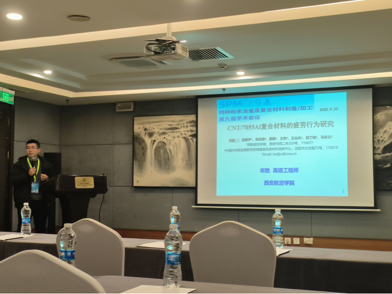 本次大会共设置了14场大会报告和80余场分会报告。在分会场环节,pp电子游戏官网三位教师应邀作专题报告,展示了学校在相关领域的科研进展:罗西希教授在第五会场作了题为《多功能铁铝合金涂层及其性能研究》的邀请报告,分享了在航空材料表面涂层与防护技术方面的最新研究成果;毕胜高级工程师在第三会场报告了《CNT/7055Al复合材料的疲劳行为研究》,该研究对提升复合材料在航空领域的应用可靠性具有重要意义;杨森老师在第五会场分享了《激光表面改性诱导块体金属玻璃自由体积不对称分布及强韧化机制》,展现了学校在非晶合金等新型材料领域的深入探索。