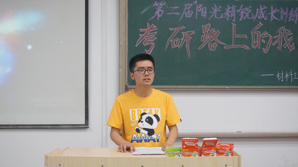 接下来分享自己成功经验的是杨超群,他指出成功的准则,谢绝盲目,瞄准目标,为之奋斗,要将被动学习转为主动学习,尽早确立学习目标和发展方向。杨超群以自身读研的深刻经历告诉学生,要锻炼自己的交际能力,增强自信心,提高自己的表达能力,这将为以后的学习生活打下良好根基,至此,会议圆满落幕。